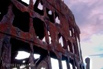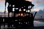 Wreck of the Peter Iredale near Astoria, Oregon. It was a four-masted steel barque sailing vessel that ran ashore October 25, 1906, on the Oregon coast en route to the Columbia River.